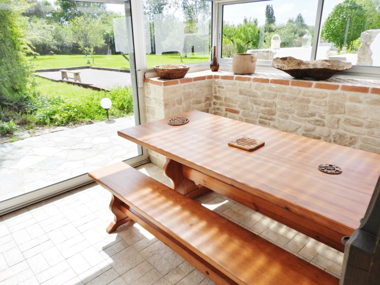 - Véranda donnant sur le terrain de pétanque et le verger